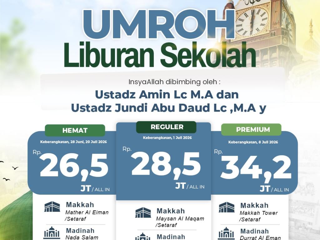Umroh Libur Sekolah Hemat 28 Juni 2026 (9 Hari)
